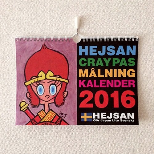 HEJSANのクレパス画をあしらったカレンダーの2016年版が完成しました。表紙はさる年にちなんであのお猿のヒーローをモチーフに!